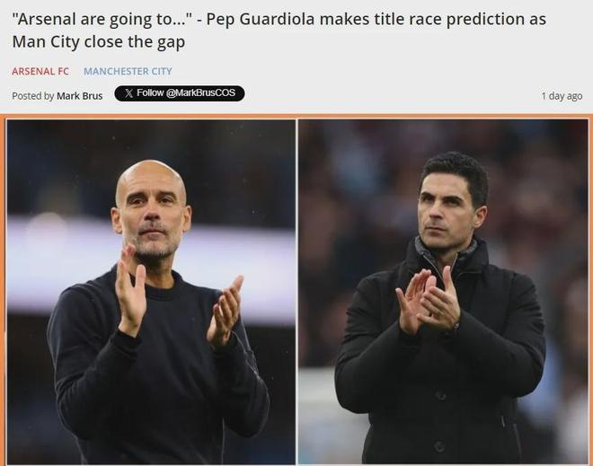 曼城主帅表示:“我有感觉,即便如今他们丢了一些分,但阿森纳未来只会丢很少、很少的分数。如果我们想占据榜首,就必须赢下一场又一场比赛,并且要靠表现赢下这些比赛,而不是靠运气……”
