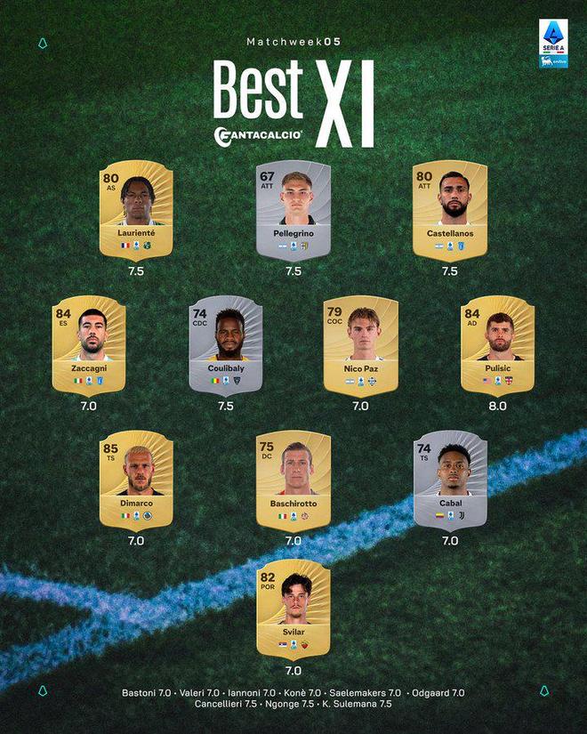 意甲官方第5轮最佳阵:尼科·帕斯、普利西奇入选
